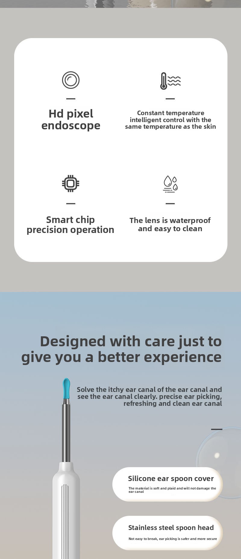 Visual Ear Cleaning: Built-in endoscope with LED light for clear visibility during ear cleaning.